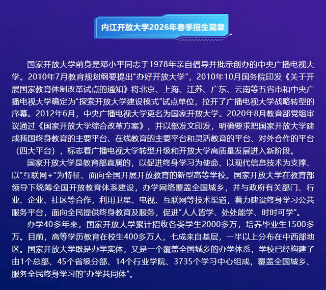 内江开放大学2026年春季招生简章